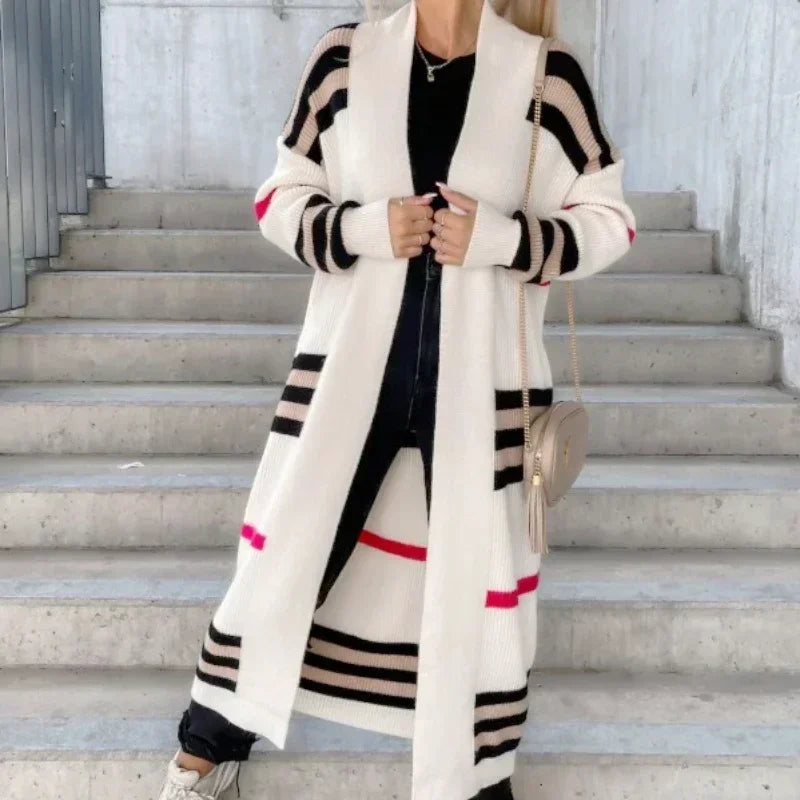 Adoptér et chic og afslappet look med vores stribede cardigan!